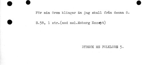 //// För min öron klingar än jag skall från denna ö. //// ^ S.58, 1 str.(med mel.Moberg Excapt) //// DYBECK MS FOLKLORE ////