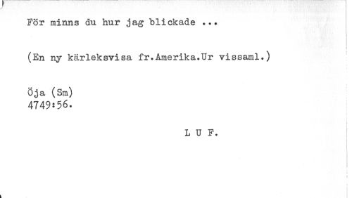 //// För minns du hur jag blickade ... //// (En ny kärleksvisa fr.Amerika.Ur vissaml.) //// O ja (Sm) //// 4749:56. i //// t //// t //// t //// L U F. //// I //// i //// i ////
