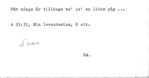 //// För många år tillbaga va' ja' en liden påg ... //// A $1:31, Min levnadsvisa, 8 str. //// ' ! //// I //// <J J ^ //// i //// RA. //// . //// . //// ! //// ^ jj ////
