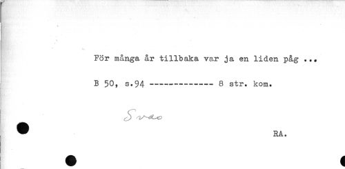 //// n. //// För många år tillbaka var ja en liden påg ... //// . //// : B 50, s.94----8 str. kom. //// ) //// ^ RÅ. ////