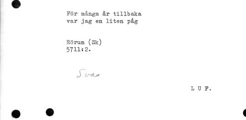 //// För många år tillbaka //// var jag en liten påg //// Rörum (Sk) //// 57H:2. //// J < - //// L U F. ////