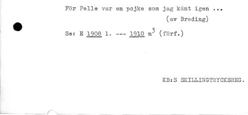 //// För Pelle var en pojke som jag känt igen ... //// (av Breding) //// ^ Se: E 1908 1. -- 1910 m^ (förf.) //// - //// * //// KB:S SKILLINGTRYCKSREG. //// ____ ____ ____ _____ _____ __ ////