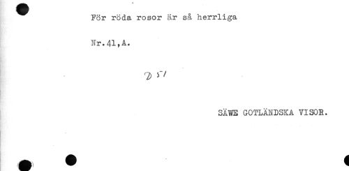 //// För röda. rosor är så herrliga //// Nr.41,A. //// T) s" //// /SÄWE GOTLÄNDSKA VISOR. ////