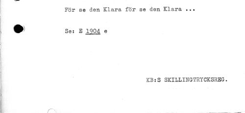 //// För se den Klara för se den Klara ... //// ^ Se: E 1904 e //// < //// i //// y //// ! //// KB:S SKILLINGTRYCKSREG. ////