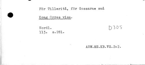 //// ^ För Tilleritå, för Gossarna små //// ^^ Kong Orres visa. //// Nordl. //// 113. s.281. //// ARW.MS.KB.VS.2:2. ////