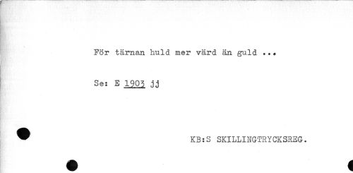 //// För tärnan huld mer värd än guld ..* //// - //// Se: E 190? jj //// ^ KB:S SKILLINGTRYCKSREG. ////