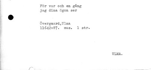 //// För var och en gång //// jag dina ögon ser //// Övergaard,Ulma //// 11642:87. mus. 1 str. //// } //// ULMA. //// r", ____- ////