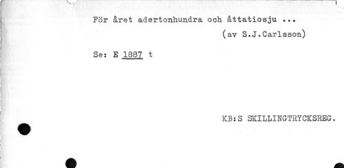 //// j För året adertonhundra och åttatiosju ... //// (av S.J.Carlsson) //// I Se: E 1887 t //// 't! ' //// t //// i //// * //// KB:S SKILLINGTRYCKSREG. //// ... ... ////