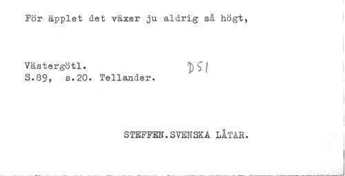 //// För äpplet det växer ju aldrig så högt, //// Västergötl. ! //// S.89, s.20. Tellander. //// STEFFEN.SVENSKA LÅTAR. ////