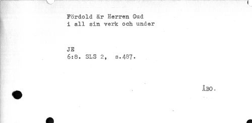 //// - . ^ ...-.<-. //// - //// Fördold är Herren Gud //// i all sin verk och under //// - //// * //// * //// JE //// 6:8. SLS 2, s.487. //// ^ ÅBO. ////