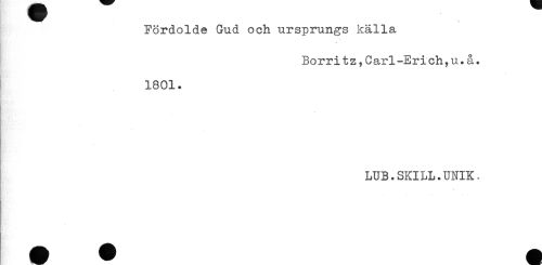 //// B;, ^jji)^^ //// Fördolde Gud och ursprungs källa //// . //// Borri t z,Carl-Eri ch,u.å. //// 1801. //// LUB.SKILL.UNIK. ////