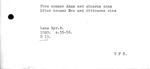 //// Före kommer Adam med sönerna sina //// Efter kommer Eva med döttrarna sina //// Lane Ryr.B. //// 1040. s.55-56. //// D 13. //// V F F. ////