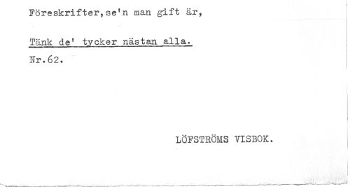 //// Föreskrifter,se'n man gift är, //// Tänk de' tycker nästan alla._ //// Nr.62. //// < //// ] //// LÖFSTRÖMS VISBOK. //// < //// L^ , .. - _ - ____ .. - „ ' -' ' -____ ...--^ ////