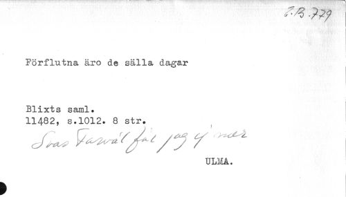 //// Förflutna äro de sälla dagar //// Blixts saml. //// 11482, s.1012. 8 str. //// ULMA. ////