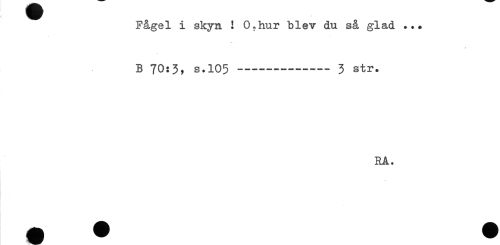 //// Fågel i skyn ! O.hur blev du så glad ... //// B 70:3* S.105 ----3 str. //// RA. ////