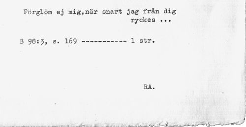 //// Förglöm ej mig,när snart jag från dig //// ryckes ..+ //// B 98:3, s. 169-----1 str. //// i //// ! //// RA. //// A ' .. F //// ...... .... . .. ... . ___.. ... -^ ^ ////