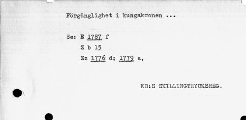 //// Förgänglighet i kungakronen ... //// Se: E 1787 f //// Z b 15 //// Zz 1776 d; 1779 a, //// t //// i ////