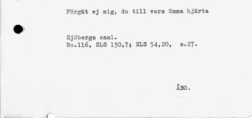 //// Förgät ej mig, du till vars ömma hjärta //// Sjöbergs saml. //// No.116, SLS 130,7; SLS 54,20, s.27* //// t' //// ' //// ÅBO. //// ' s"* //// . , ...__ ....... . _ , , ////