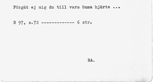//// Förgät ej mig du till vars ömma hjärta ... < //// ! //// < //// < //// < //// B 97, s.72---- 6 str. //// < //// t //// < //// t //// ! //// < //// < //// t //// RA. ////