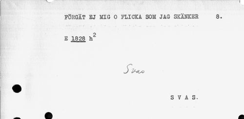 //// FÖRGÄT EJ MIG O FLICKA SOM JAG SKÄNKER 8. //// -- * . " ' T *" ' ... " .. ... ^ " . ' //// E 1828 h^ //// ! //// < //// t //// L-*! '' * //// S V A S. ////