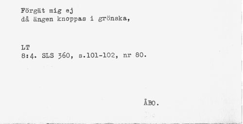 //// Förgät mig ej //// då ängen knoppas i grönska, //// i //// LT //// 8:4. SLS 36O, s.101-102, nr 80. ////