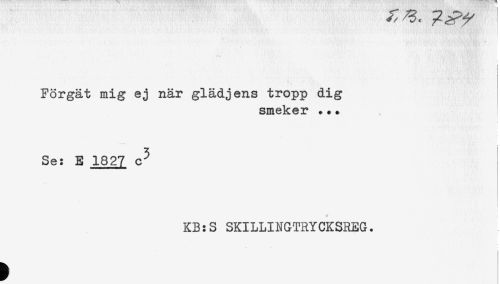 //// s ; -1, I- j //// '' . ' //// t //// < //// Förgät mig ej när glädjens tropp dig //// smeker ... //// < //// Se: E 1827 c^ //// t ////