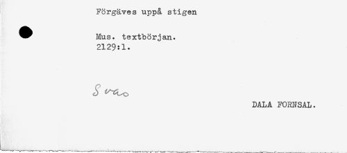 //// Förgäves uppå stigen //// ^^ Mus. textbörjan. //// 2129:1. //// DALA FORNSAL. //// ... ......., _ ////