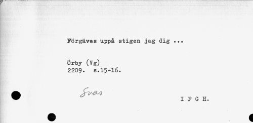 //// - //// -- //// * //// H i //// Förgäves uppå stigen jag dig ... //// * //// * //// Örby (Vg) //// 2209. s.15-16. //// ^ I F G H. ////