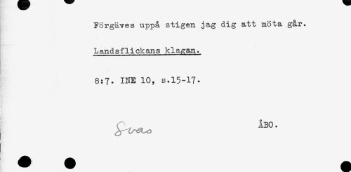 //// Förgäves uppå stigen jag dig att möta går. //// Landsflickans klagan. //// 8:7. INE 10, s.15-17. //// n- ////