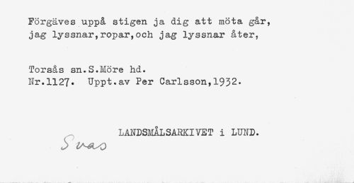 //// Torsås sn.S.Möre hd. //// Nr.1127. Uppt.av Per Carlsson,1932. //// LANDSNÅLSARKI VE T i LUND. ////