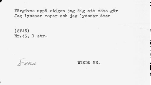 //// Förgäves uppå stigen jag dig att möta går //// Jag lyssnar ropar och jag lyssnar åter //// (SVAS) ' //// Nr.43, 1 str. //// t //// B ////
