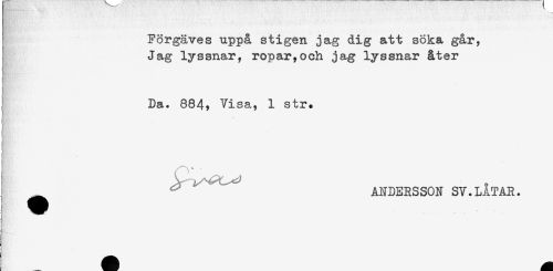 //// . //// Da. 884) Visa, 1 str. //// ! //// t . ' //// I //// ^ ^ ^/^t^ ANDERSSON SV.LÅTAR. ////