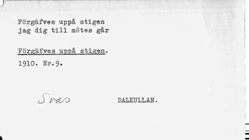 //// Förgäfves uppå stigen. //// 1910. Nr.9. //// ^ ^^O DALSULLAN. //// i ////