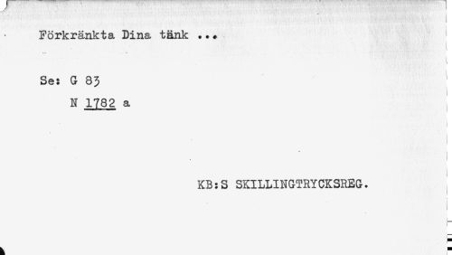 //// Förkränkta Dina tänk ... //// - //// Se: G 83 //// i //// N 1782 a //// i //// < //// KB:S SKILLINGTRYCKSREG. //// ( //// < //// r //// k ////