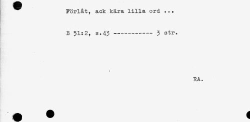 //// Förlåt, ack kära lilla ord ... //// B 51:2, s. 43 -----3 str. //// RA. ////