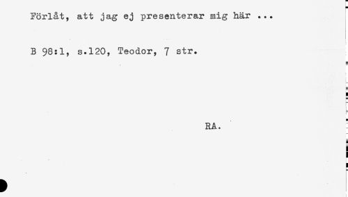 //// Förlåt, att jag ej presenterar mig här ... //// B 98:1, s.120, Teodor, 7 str. //// t //// L //// L //// RA. " //// ) //// i //// ! ////