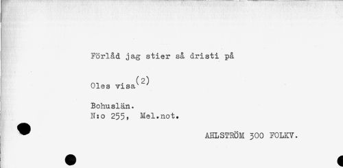 //// Förlåd jag stier så dristi på //// (2) //// Oles visa //// Bohuslän. //// N:o 255, Mel.not* //// ^ AIILSTRÖM 300 FOLKV. //// § //// i ////