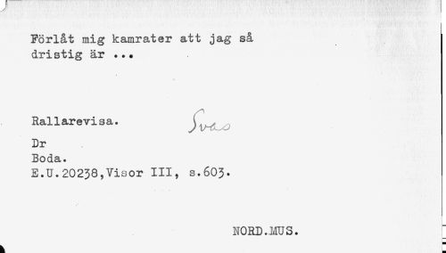 //// Rallarevisa. //// Dr //// Boda. //// E.U.20238,Visor III, s.603. //// NORD.HUS. * ////
