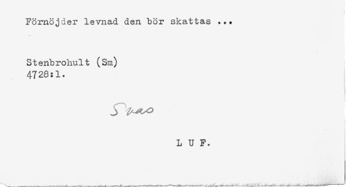//// Förnöjder levnad den bör skattas ... //// Stenbrohult (Sm) //// 4726:1. //// r //// - //// L U F. ////