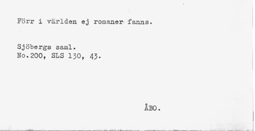 //// Förr i världen ej romaner fanns. //// Sjöbergs saml. //// No.200, SLS 130, 43. //// ÅBO. ////