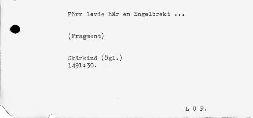 //// Förr levde här en Engelbrekt ... //// ^^ (Fragment) //// Skärkind (Ögl.) //// 1491:30. //// \ L U F. //// ____ ___ ////