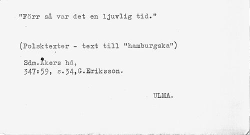 //// "Förr så var det en ljuvlig tid." //// (Polsktexter - text till "hamburgska") //// Sdm.^kers hd. //// 347:59? s.34,G.Eriksson. //// i //// ! //// ! //// ULMA. //// * //// ! //// ^, , , ,, . . ... _ . y ////