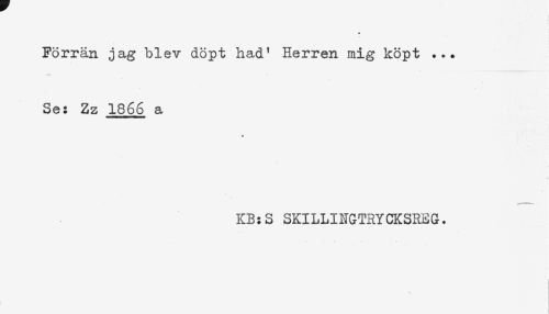 //// Förrän jag blev döpt had' Herren mig köpt ... //// Se: Zz 1866 a //// * //// KB:S SKILLINGTRYCKSHEG. ////