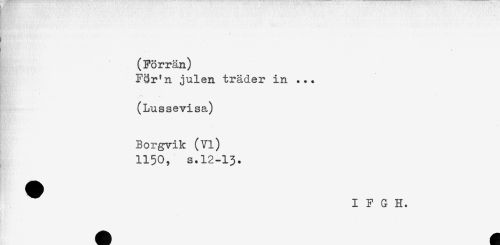 //// K? ' *; . //// (Förrän) //// F8r*n julen träder in ... //// (Lussevisa) //// Borgvik (Vi) //// 1150, s.12-13. //// ^ I F G H. ////