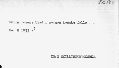 //// Form rosens blad i morgon kanske falla ... //// Se: E 1852 v^ //// 4 //// f //// KB:S SKILLINGTRYCKSREG. ////