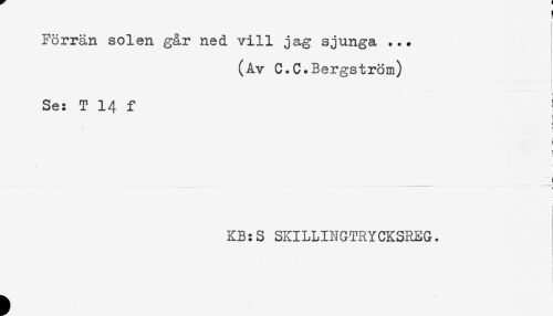//// Förrän solen går ned vill jag sjunga ... //// (Av C.C.Bergström) //// i //// Se: T 14 f //// ! //// ^ //// } //// i //// i //// KB:S SKILLINGTRYCKSREG. ////