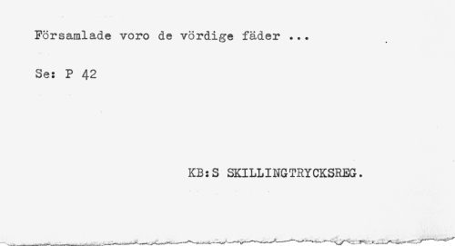 //// Församlade voro de vördige fäder ... //// Se: P 42 //// KB:S SKILLINGTRYCKSREG. ////