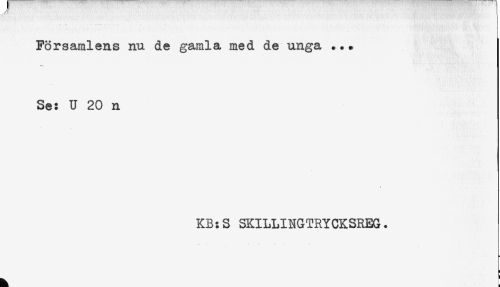 //// Församlens nu de gamla med de unga ... //// Se: U 20 n //// KB:S SKILLINGTRYCKSREG. ////