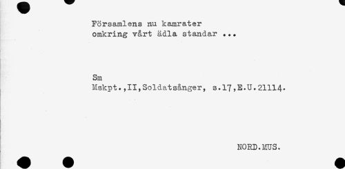 //// Församlens nu kamrater //// omkring vårt ädla standar ... //// Sm //// , Mskpt.,11,Soldatsånger, s.l7,E.U.21114. //// NORD. MUS. ////