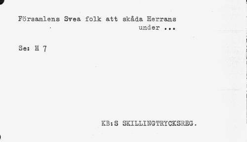 //// ) //// ( //// Församlens Svea folk att skåda Herrans //// under ... //// i //// Se: H 7 //// KR:S SKILLINGTRYCKSREG. ////